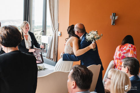 Nach der offiziellen Zeremonie begleiteten wir das Paar beim Sektempfang, den Gratulationen und Familienbildern. Typische Momente wie das Brautkleid im Detail, der Ringtausch, das Anstoßen mit den Gästen oder kleine Szenen beim Getting Ready werden dabei von uns mit Foto & Film eingefangen.
